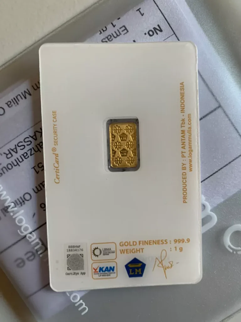 Emas ANTAM Logam Mulia (LM) hadir dengan desain dan kemasan dalam bentuk kartu yang disertai security mark untuk meningkatkan perlindungan dan keamanan bagi investasi anda.